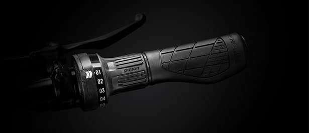Makkelijk schakelen door te draaien, kies je een van de 6 Pinion versnellingen, en houd je je oog op de weg.